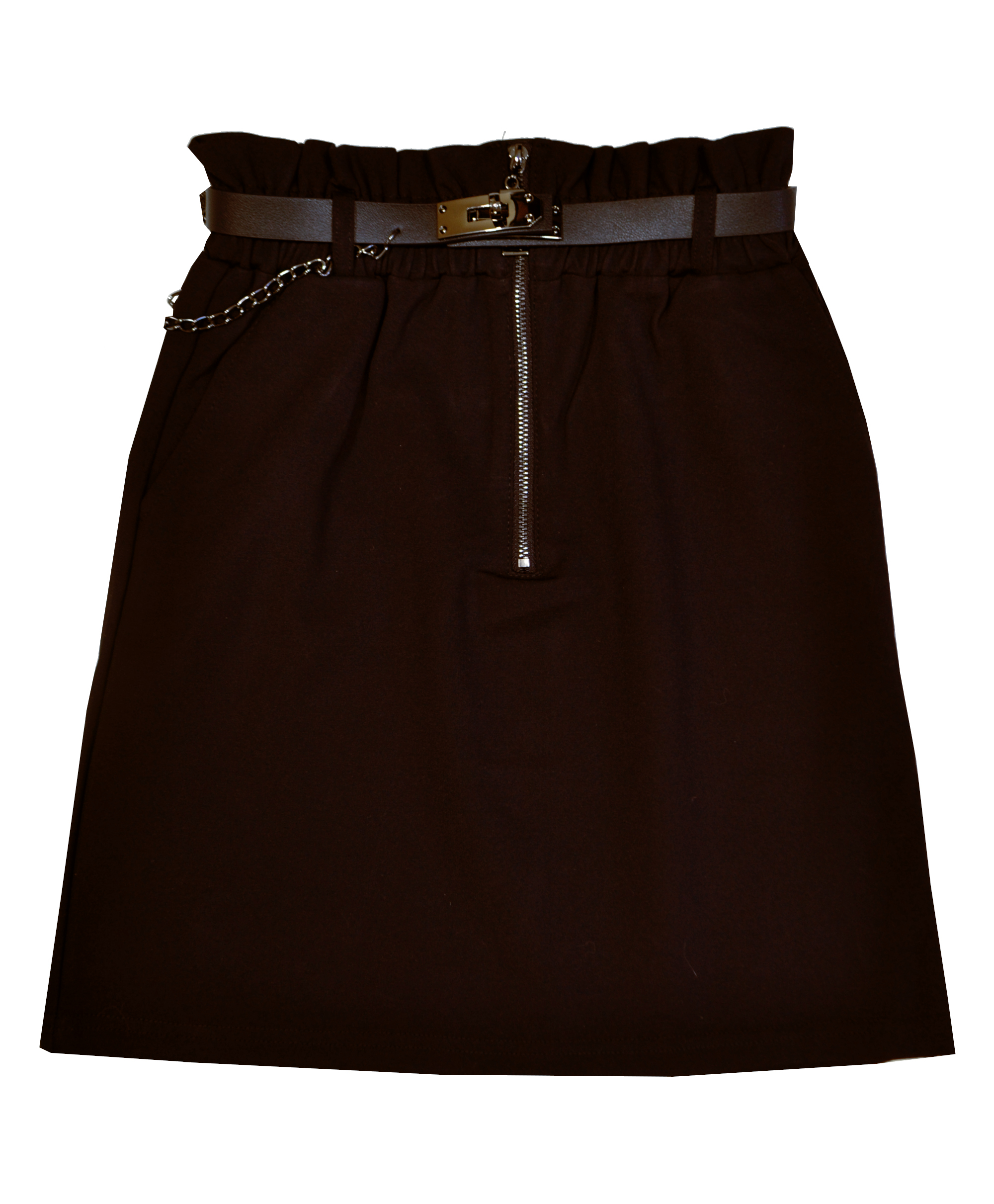 Юбка для школы из плотного трикотажного полотна высокого качества с добавлением эластана.  Пояс собран на резинку.  Ремень с цепочкой входит в комплект. Пошив безупречный. Замок спереди не функционален.