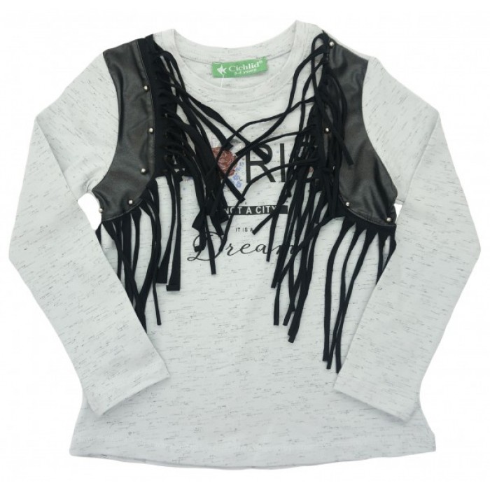 Удобная модель из мягкого трикотажа, яркий рисунок, стильная отделка из экокожи понравятся девочкам.