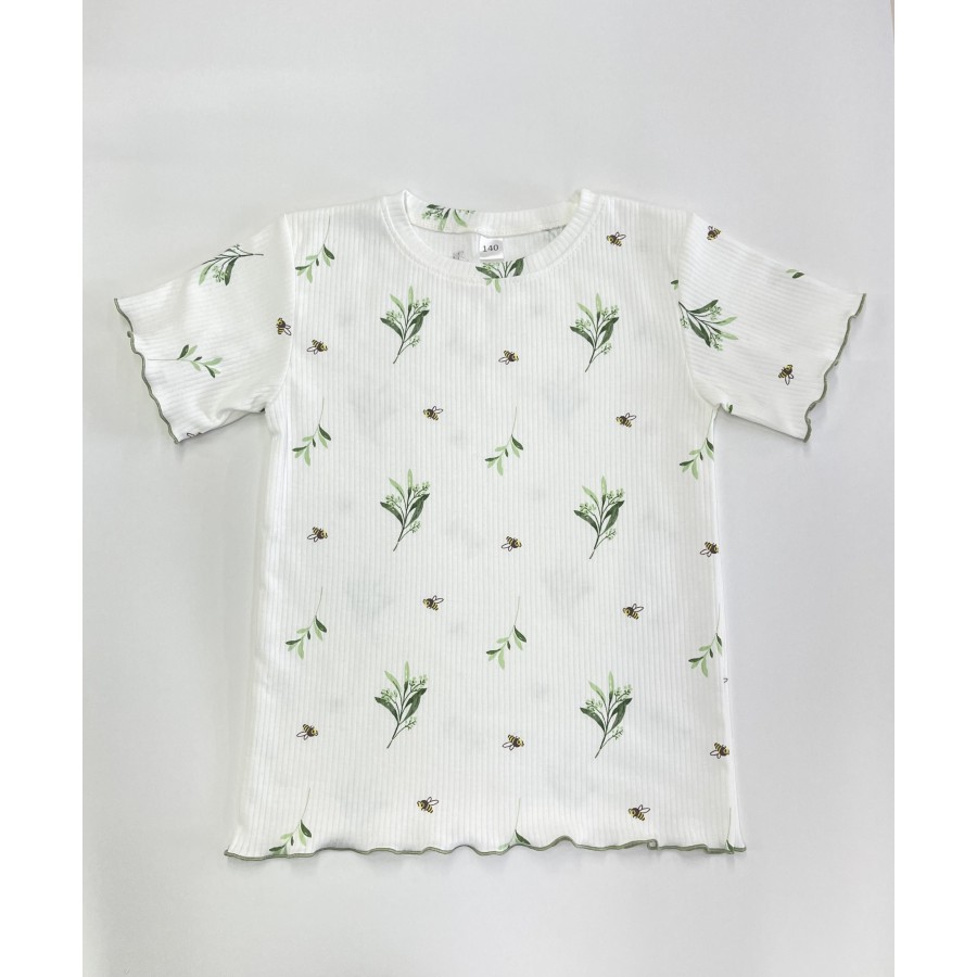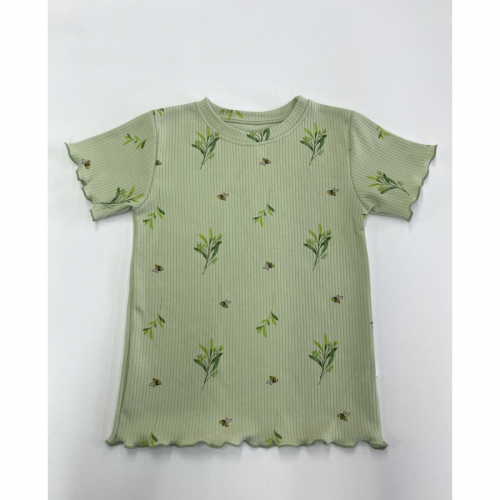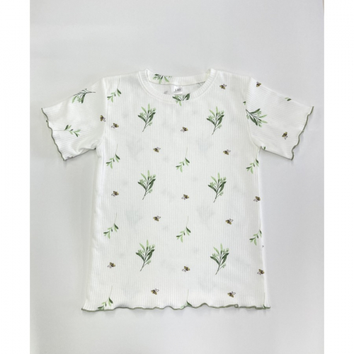 60-1 ИГЛ Футболка "Пчелки/молочный" из интерлока в рубчик.