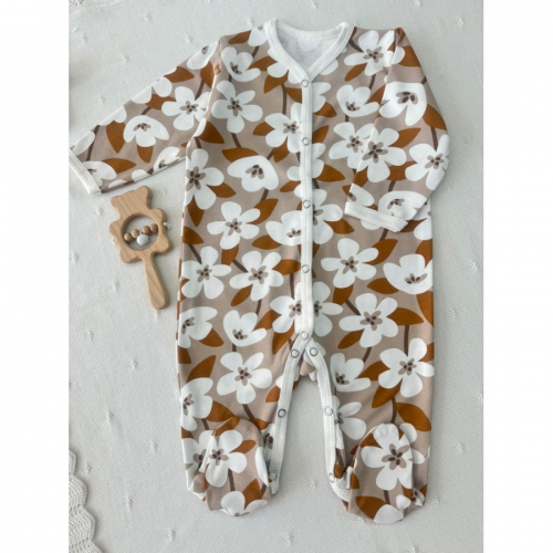 .78-10 ИНО Комбинезон "Ангелочек" из интерлока , "Цветы на бежевом".