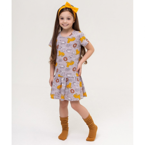 Платье для девочки - отлично подойдет для прогулок, детского сада или дома. Яркие расцветки на любой вкус порадуют юную модницу. Платье выполнено из высококачественной ткани из 100% хлопка, что безопасно и приятно для кожи ребенка. Круглая горловина и короткие рукава обработаны тканью с лайкрой, которая тянется и не сковывает движение ребенка, а также позволит ребенку самостоятельно одеваться и раздеваться. Юбка платья с заниженной талией, расклешенная с широкой оборкой. Сделано в России.