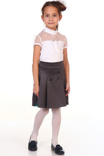 Оригинальная блузка из мягкой и приятной к телу вискозы, комбинированная тонкой сетчатой тканью, подчеркнет нежность плеч и хрупкость детского образа.