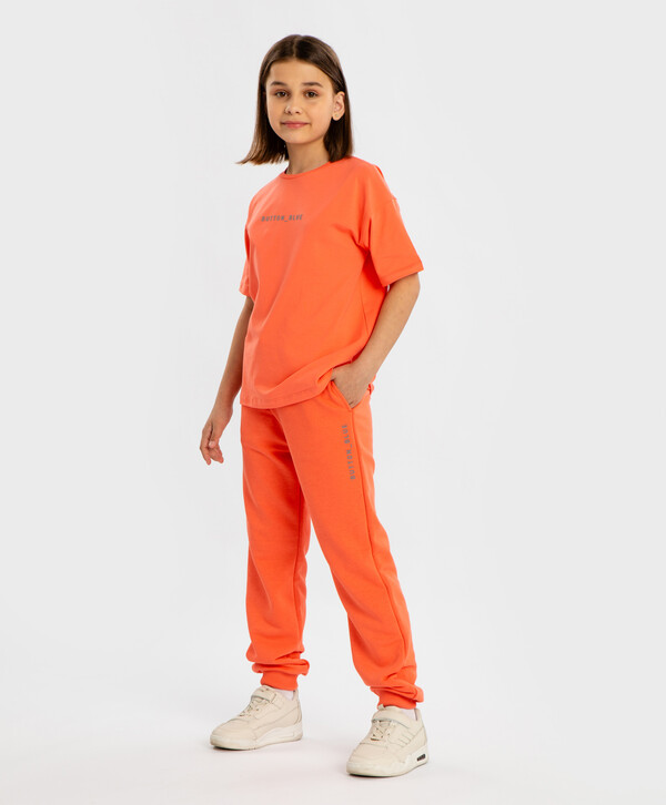20% полиэстер цветОранжевый80% хлопок/20% полиэстер Хлопок Джоггеры базовые с утяжкой на поясе коралловые для девочки Button Blue