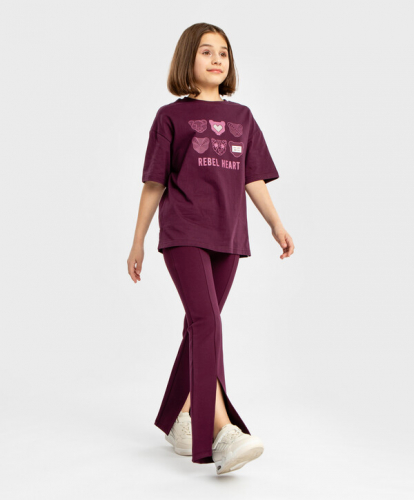 5% эластан цветФиолетовый65% вискоза/30% нейлон/5% эластан Вискоза/ нейлон Брюки трикотажные буткат с разрезами спереди фиолетовые для девочки от Button Blue