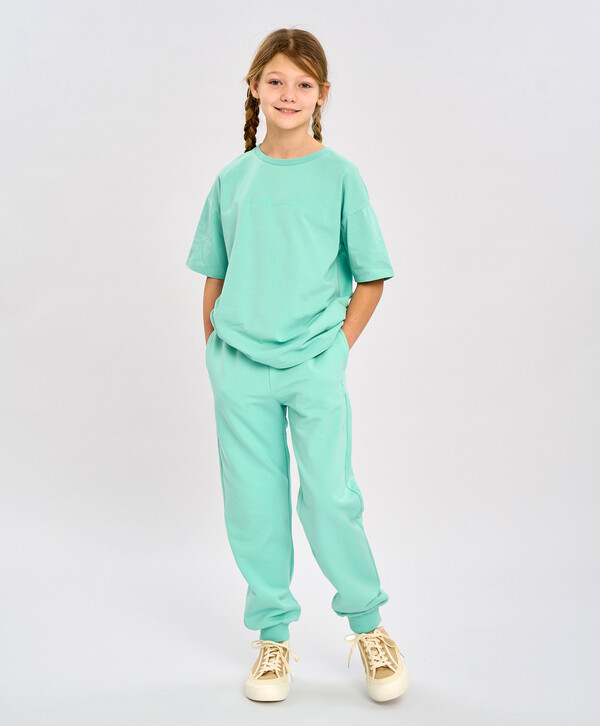 5% эластан цветЗеленый95% хлопок/5% эластан Хлопок Джоггеры базовые детские утепленные с поясом на резинке зеленые Button Blue