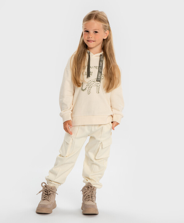 1120 р. 1400 р. Джоггеры с четырьмя карманами и внешними швами молочные для девочки Button Blue