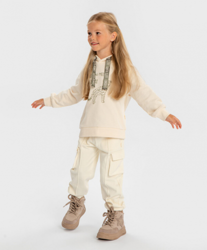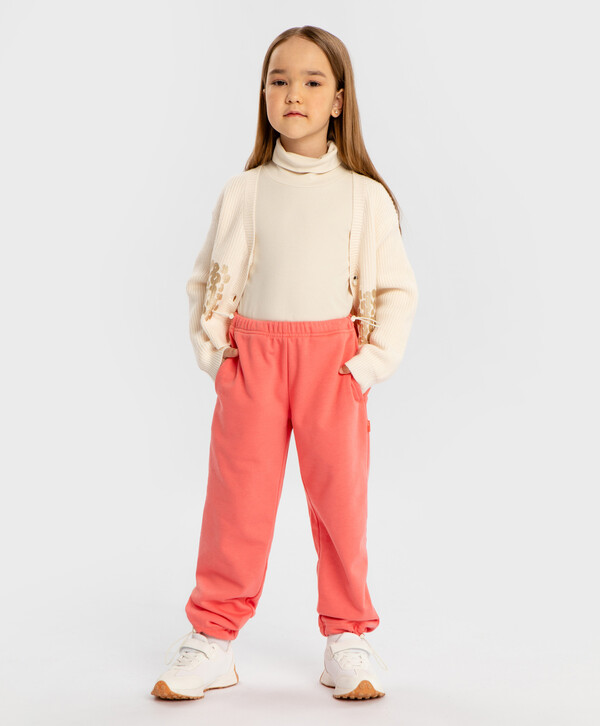 40% полиэстер цветОранжевый60% хлопок/40% полиэстер Хлопок Джоггеры с утяжкой на поясе и брючинах коралловые для девочки Button Blue
