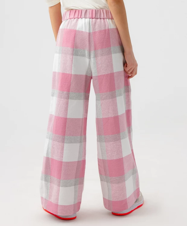 100% хлопок Нежные бело-розовые фланелевые брюки-кюлоты для девочки подростка - стильный и универсальный вариант для повседневных и праздничных мероприятий. Мягкая и теплая хлопковая ткань обладает хорошей терморегуляцией, приятна на ощупь и проста в уходе. Брюки с поясом на резинке легко надеваются и хорошо садятся на любую фигуру. Благодаря широким штанинам и прямому крою модель обеспечивает комфорт и удобство при движении. Два удобных прорезных кармана позволят носить с собой важные мелочи. Модель идеально сочетается с аналогичной фланелевой рубашкой, а также с футболками, джемперами, толстовками и разнообразием верхней одежды из капсульной коллекции Button Blue. Кюлоты в клетку в стиле casual представлены в размерах от 134 до 158.