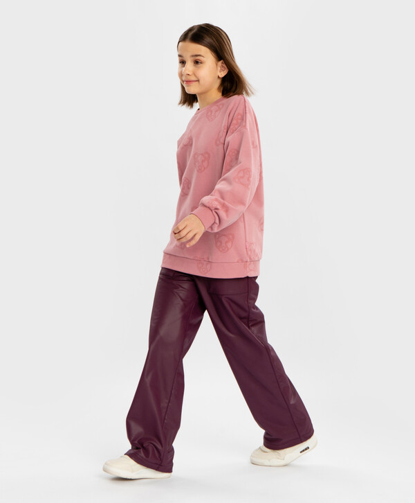 1760 р. 2200 р. Брюки палаццо широкие из веганской кожи темно- фиолетовые для девочки Button Blue