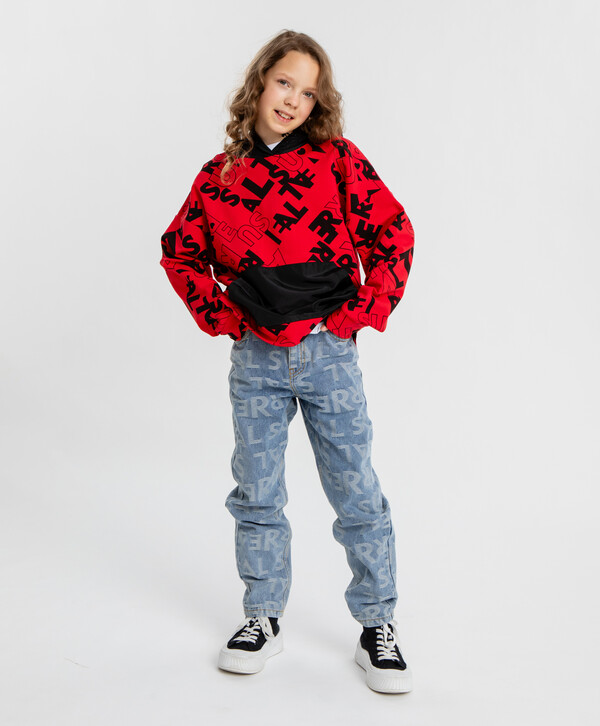 1840 р. 2300 р. Джинсы mom fit из с принтом для девочки Button Blue