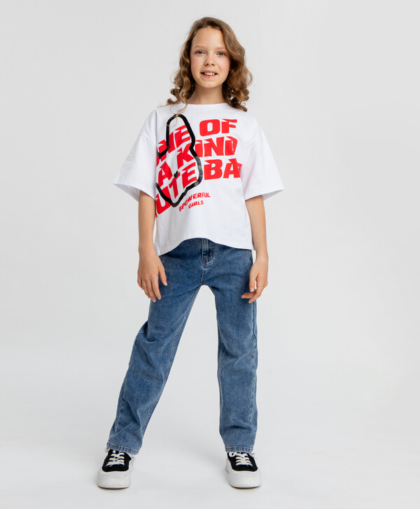 2% эластан цветГолубой75% хлопок/23% полиэстер/2% эластан Хлопок Джинсы straight fit синие для девочки Button Blue
