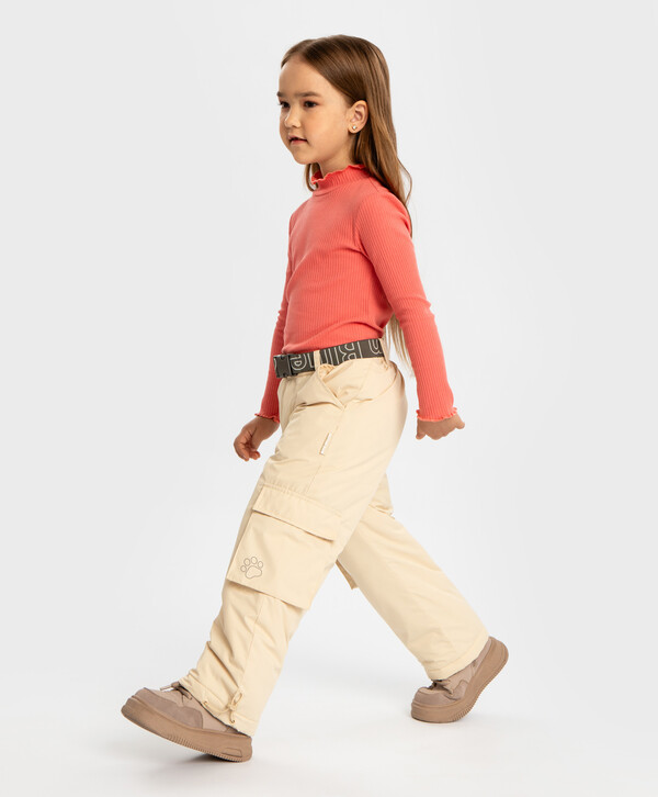 100% полиэстер цветБежевыйверх:100% полиэстер; подкладка:100% полиэстер; утеплитель:100% полиэстер До -10°С Полиэстер Брюки утепленные демисезонные непромокаемые с утяжкой по низу бежевые для девочки Button BlueСинтепон 120г/м2/ подкладка текстиль
