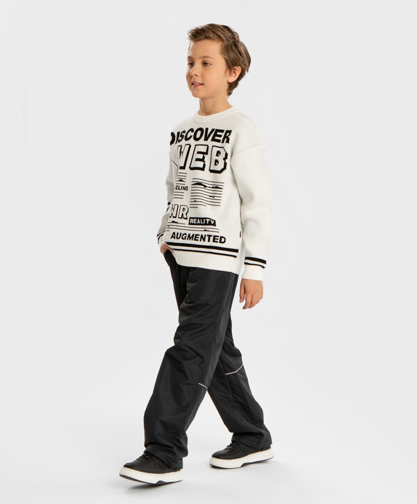 100% полиэстер цветверх:100% полиэстер; подкладка:100% полиэстер До -5°С Полиэстер Брюки утепленные демисезонные со светоотражающими элементами черные детские Button BlueПодкладка - флис/ без утеплителя