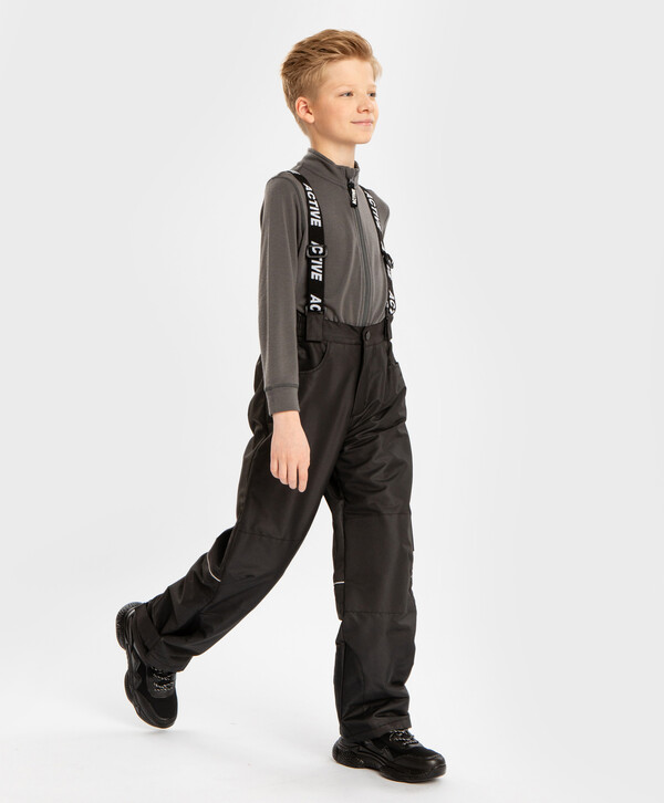 100% полиэстер цветЧерныйверх:100% полиэстер; подкладка:100% полиэстер До -5°С Полиэстер Брюки демисезонные со съемными подтяжками непромокаемые черные детские Button BlueМембрана; подкладка - флис/ без утеплителя