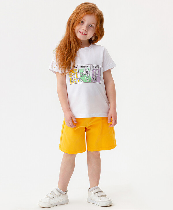 576 р. 720 р. Шорты из хлопка с карманами и нашивкой на поясе желтые для девочки Button Blue