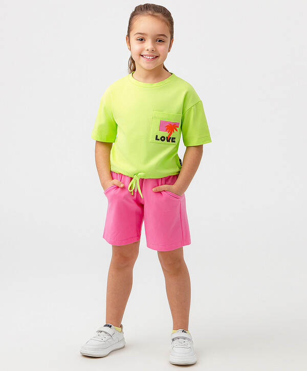 5% эластан цветРозовый95% хлопок/5% эластан Хлопок Шорты из футера ярко-розовые Button Blue