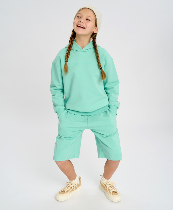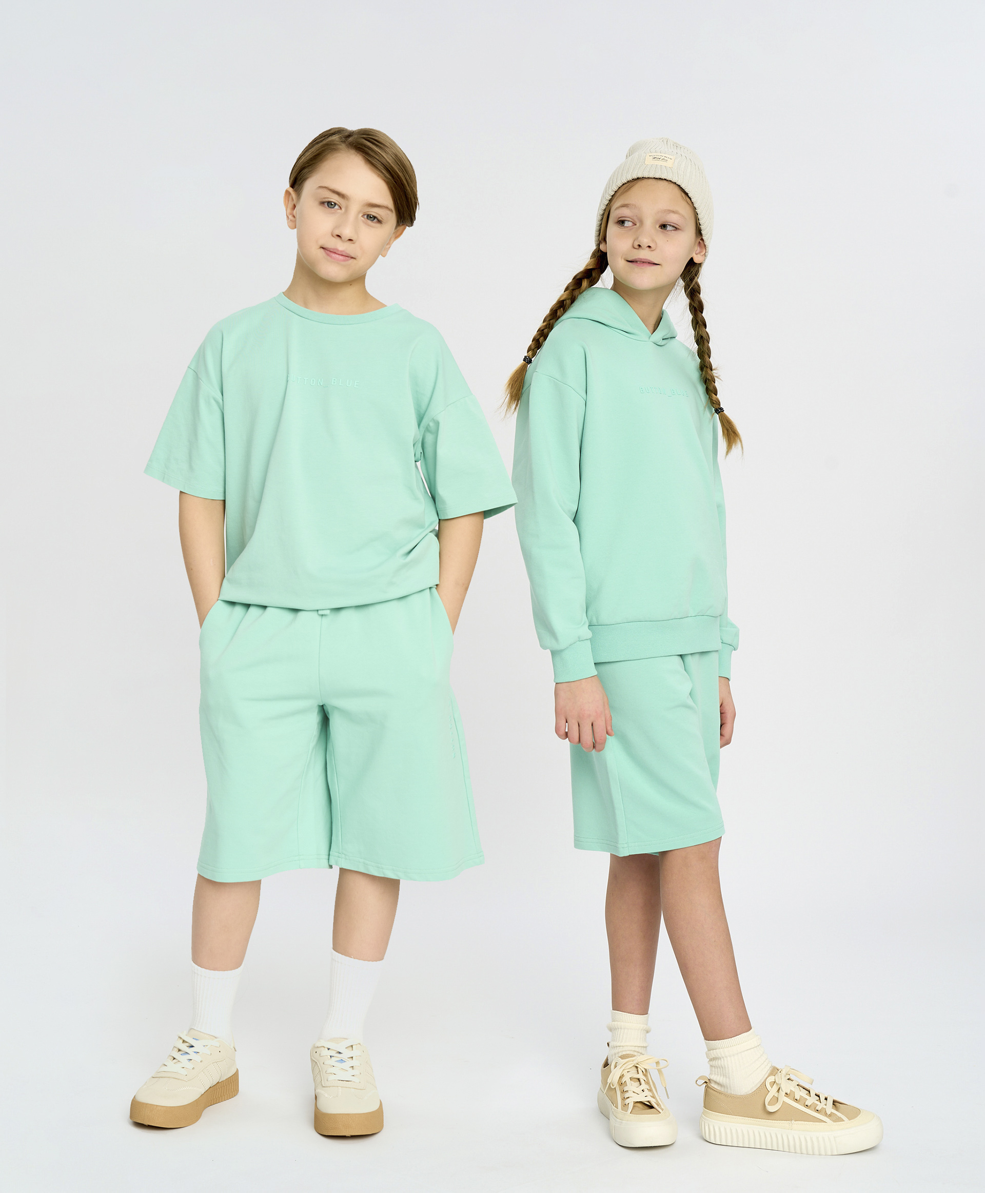 5% эластан цветЗеленый95% хлопок/5% эластан Хлопок Шорты детские базовые прямые с поясом на резинке зеленые Button Blue