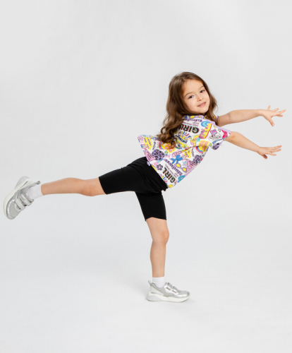 5% эластан цветМультицвет95% хлопок/5% эластан Хлопок Шорты с поясом на резинке с принтом мультицвет для девочки Button Blue