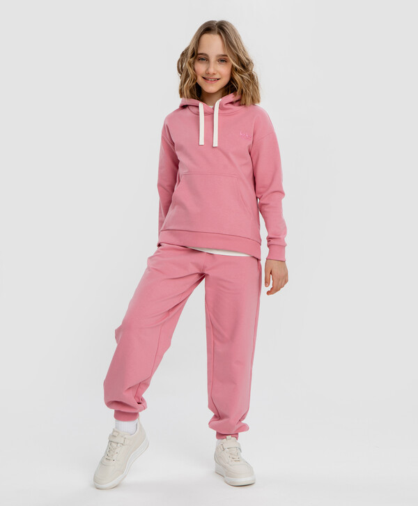 5% эластан цветРозовый95% хлопок/5% эластан Хлопок Джоггеры розовые с поясом на резинке для девочки Button Blue