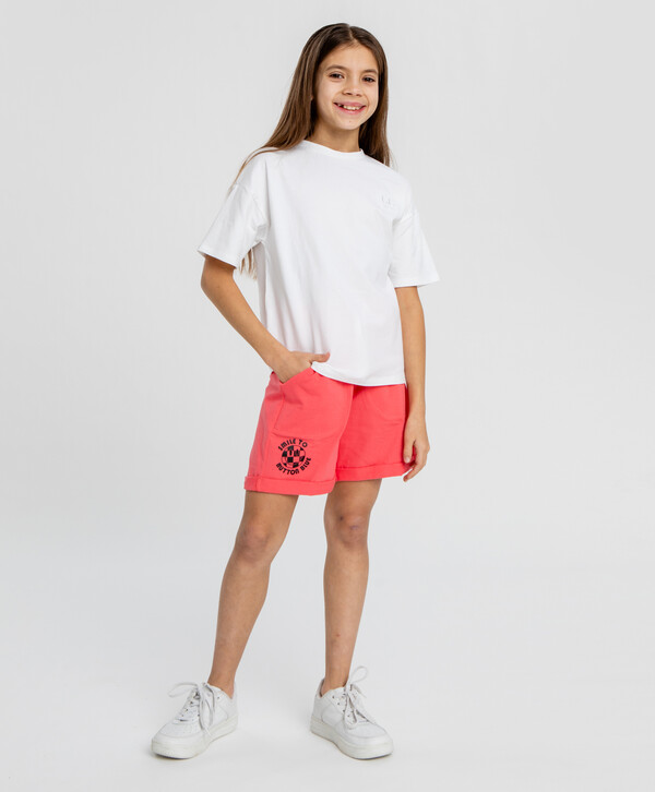 5% эластан цветРозовый95% хлопок/5% эластан Хлопок Шорты с поясом на резинке розовые для девочки Button Blue