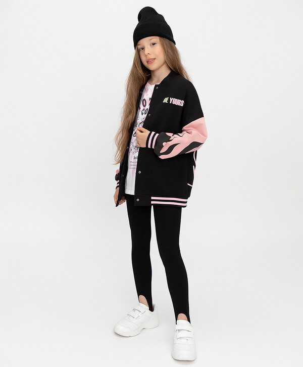Стильные черные леггинсы со штрипками для девочки подростка выполнены из плотного трикотажа, поэтому их с легкостью можно использовать как замену брюкам, джинсам и даже колготкам. Качественная ткань состоит из вискозы, нейлона и эластана, благодаря чему лосины приятны на ощупь, очень прочные и прекрасно сохраняют форму даже после множества стирок. При этом модель достаточно эластична, что обеспечивает удобство во время любых движений. На поясе леггинсов расположена резинка, поэтому их очень легко надевать. Каждую штанину дополняет штрипка - очень стильный и модный элемент одежды, который прекрасно вписывается в самые разные образы. Помимо эстетической привлекательности штрипки несут в себе дополнительное удобство - при ходьбе и активных движениях леггинсы не будут задираться. Универсальный цвет лосин и модный зауженный крой позволяют сочетать их со свитшотами, толстовками, футболками и джинсовками из капсульной коллекции Button Blue. Модель представлена в размерах от 134 до 158.