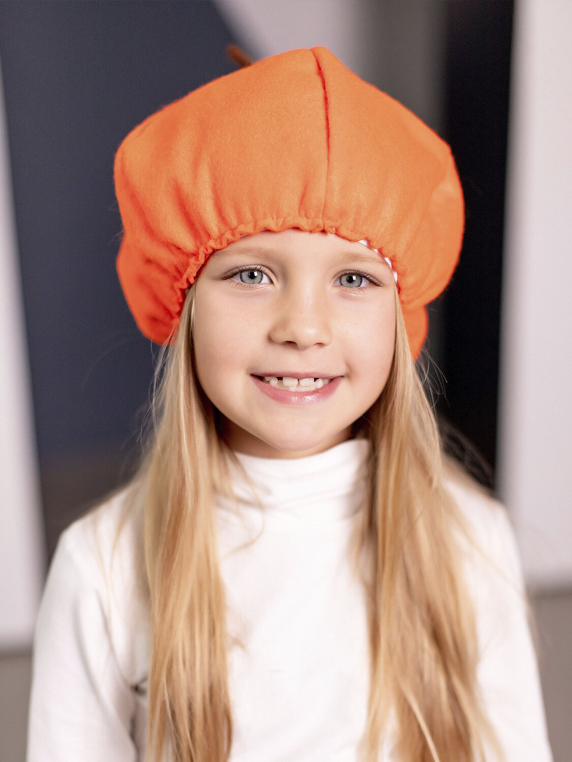 Шапочка Тыквы карнавальная для детей из фетра. Оранжевая шапка на резинке.