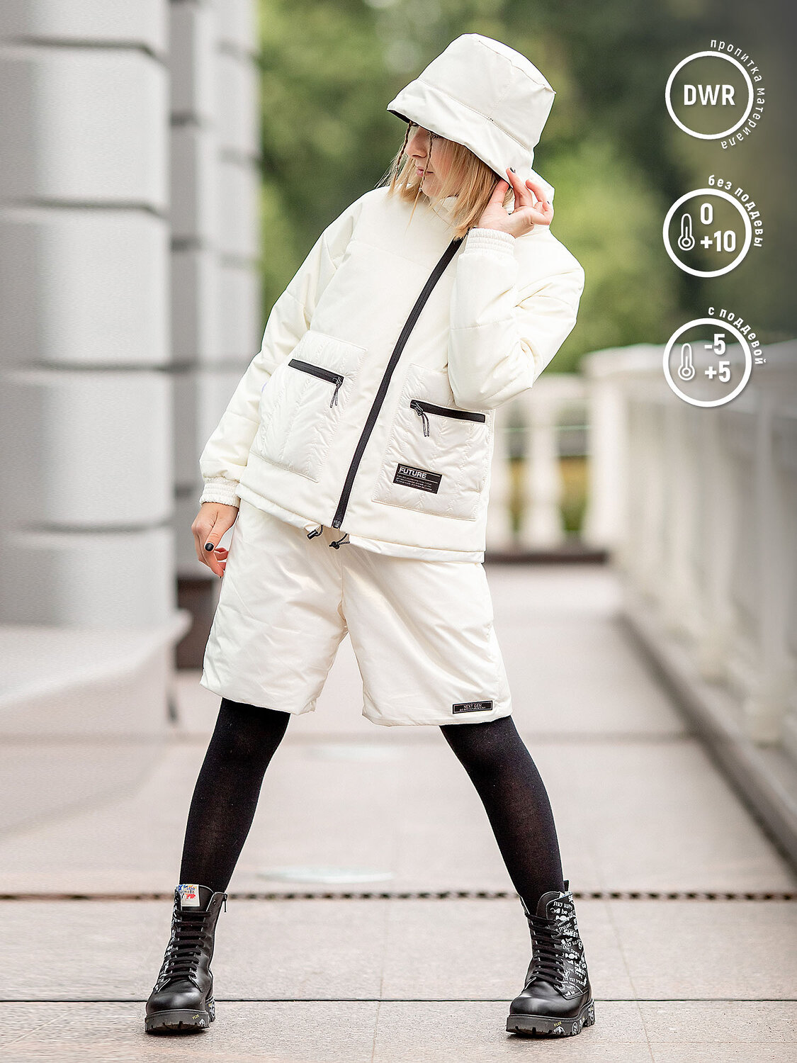 Шорты для девочки Шерон утепленные из курточной ткани с поясом. Стильные белые шорты для детей можно носить весной и осенью с колготками и леггинсами.