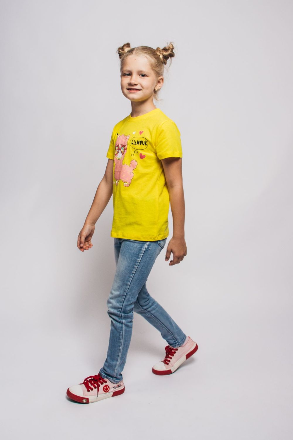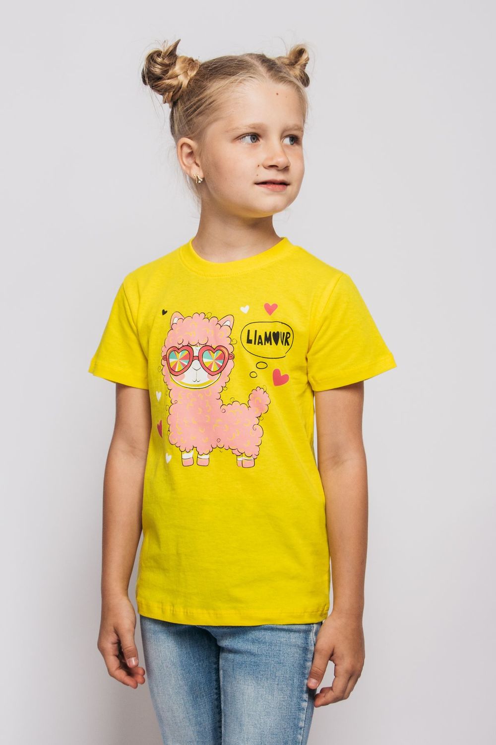 Футболка для девочки прямого силуэта с втачным коротким рукавом. Горловина круглая, обработана воротником из кулирки. Низ изделия и рукавов обработан швом в подгибку. На полочке принт шелкография. Цвет: мятный; Материал: кулирка;кулирка; Состав: 100% хлопок.