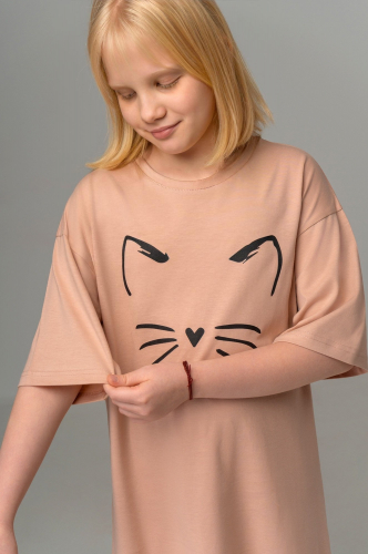 Ночная сорочка для девочек-подростков выполнена из невероятно мягкого 100% хлопка. Крой оверсайз, короткий рукав, комфортная длина выше колен – эта домашняя туника для детей идеальна для самых уютных моментов! Благодаря милому рисунку котик бежевая туника станет незаменимым акцентом домашнего отдыха!