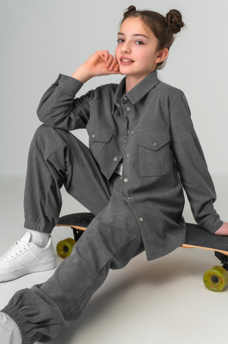 Вельветовый детский костюм с брюками — настоящий хит для девочек, которые любят стиль и комфорт! В наборе рубашка с отложным воротником и штаны с карманами.