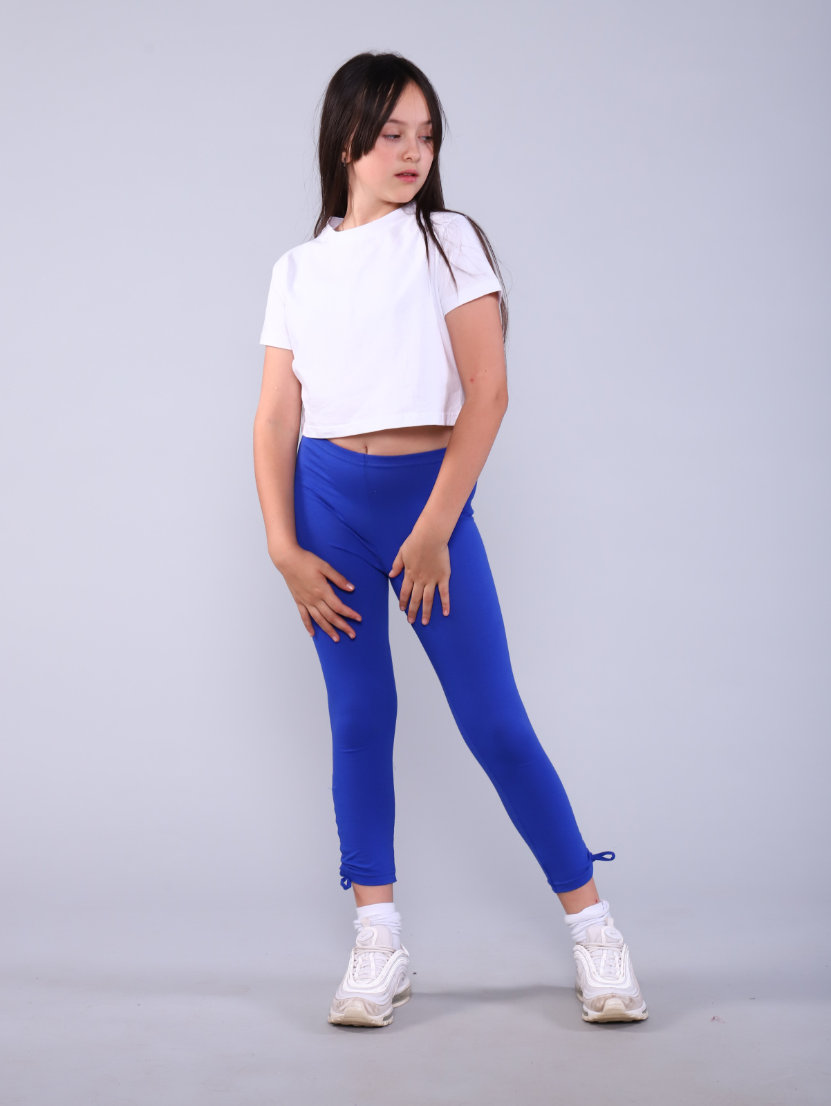 Детские укороченные лосины сшиты из хлопковой ткани с лайкрой с резинкой на поясе удобны при носке.