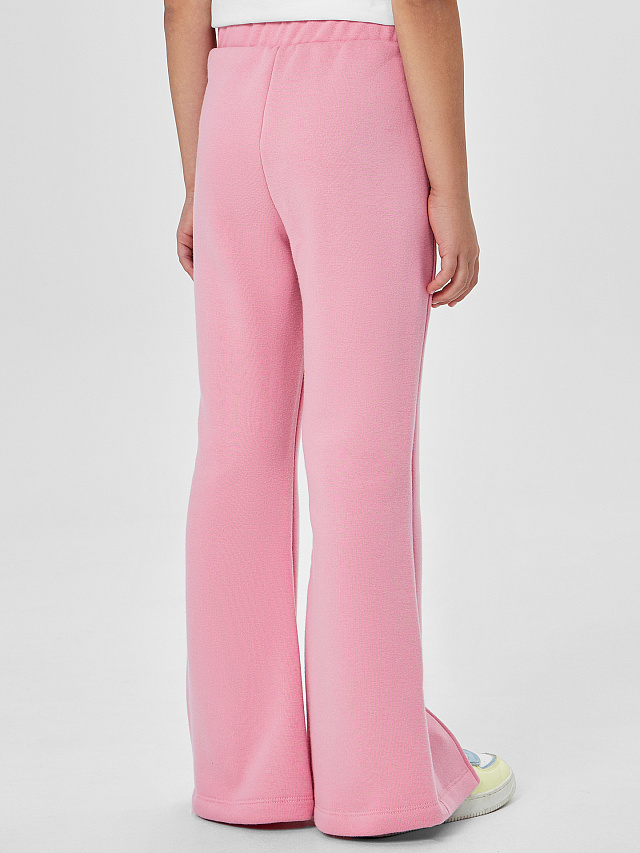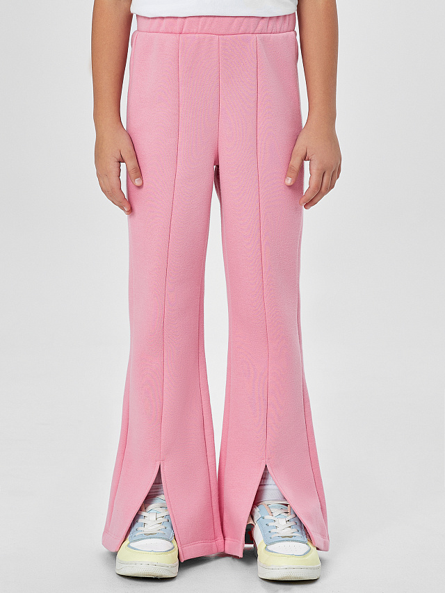 Розовые трикотажные брюки для девочек — идеальный повседневный вариант, в котором комфорт сочетается со стильным современным силуэтом. Модель со средней посадкой мягко облегает фигуру, а эластичный пояс не стесняет движений даже во время активных игр.