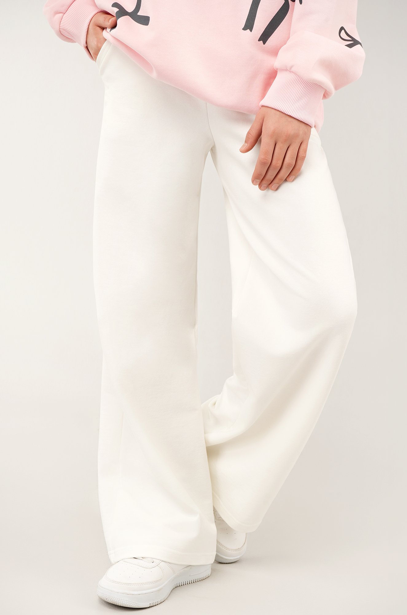 Стильные белые брюки для девочки подростка добавят образу элегантности и свободы. Мягкий хлопковый трикотаж дарит комфорт и позволяет свободно двигаться.