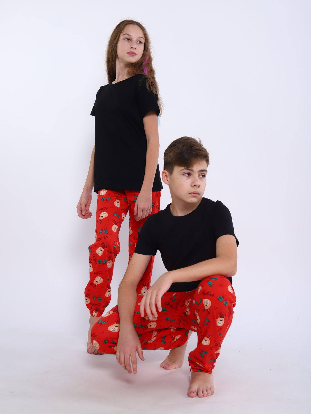 Брюки для мальчиков и девочек подростков. Детские подростковые штаны сшиты из легкого хлопкового трикотажа, прямого силуэта, внизу на резинке, с кармашками по бокам, высокой посадкой по талии с регулируемым шнурком. Подростковые брючки сшиты из натурального материала, свободные и дышащие. Спортивки подойдут для прогулок и активных спортивных игр и соревнований . Это прекрасные брюки для повседневного ношения. Домашние дела с этих брючках очень удобно делать. Джоггеры подходят и как домашняя одежда, в них комфортно и уютно. Кто-то из ребят захочет использовать их как пижамные брюки. Будем рады, если вы оставите отзыв о наших моделях одежды. Учтём Ваши пожелания! Повседневные брюки это удобная практичная немаркая модель на каждый день. Поскольку эта летняя модель внизу на резинке, ее можно выбирать с небольшим запасом по длине, они сядут на ножку ребенка удобно. Спортивные трико можно использовать как пляжные. Они подойдут и девушкам и юношам, поскольку ростовка этой модели легких штанов до 170 роста. Модная новогодняя расцветка с оленями поднимает праздничное настроение. Поэтому, эта модель порадует ребят в качестве подарка.