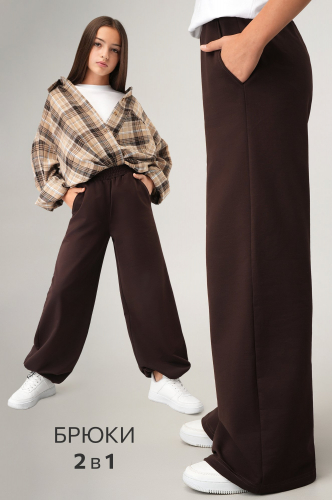 — светло-коричневые штаны с эффектом варенки выполнены из дышащего футера двухнитки (240 г/м2);