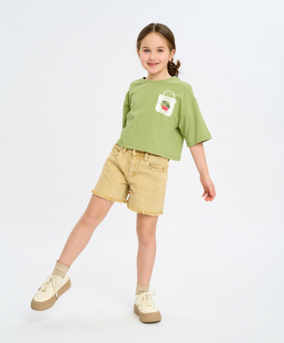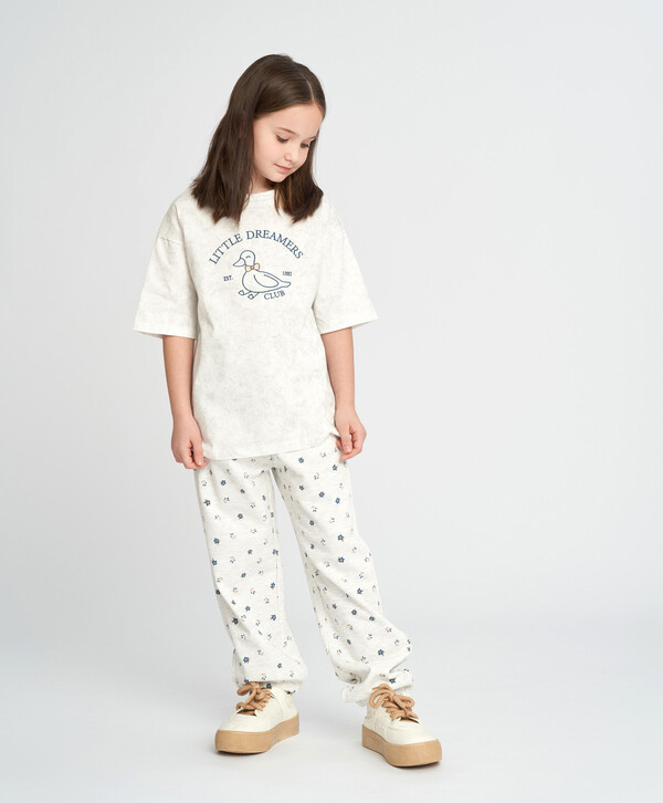 4630331022486 цветМультицвет70% хлопок/30% полиэстер Хлопок Джоггеры для девочки серые с поясом на резинке и принтом Button Blue