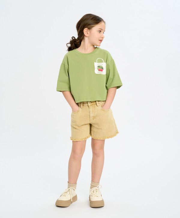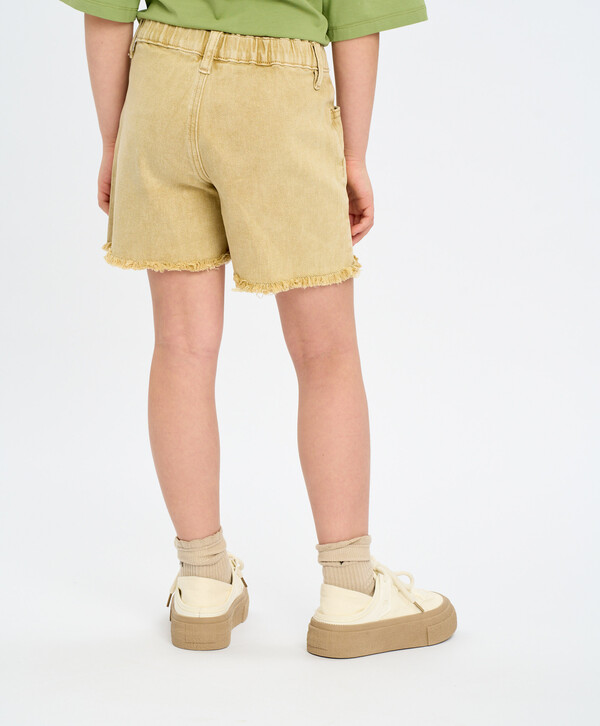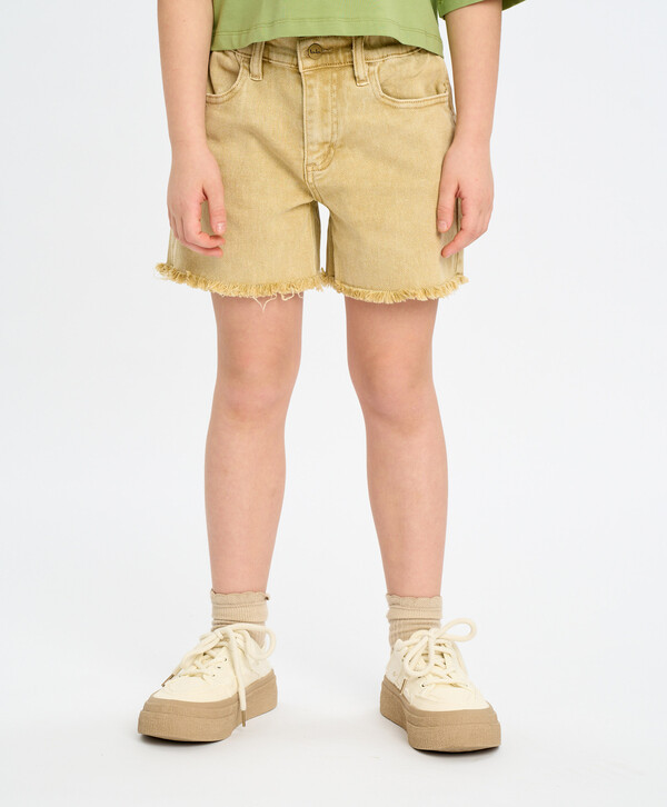 4630331026576 цветБежевый98% хлопок/2% эластан Хлопок Шорты джинсовые для девочки бежевые с поясом на резинке и бахромой Button Blue