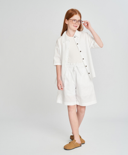 4630331017697 цветБелыйверх:75% хлопок/25% лён; подкладка:100% хлопок Лен Шорты легкие для девочки белые с поясом на резинке и карманами Button Blue