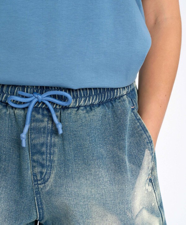 4630331011343 цветСиний100% хлопок Хлопок Шорты джинсовые укороченные для девочки синие с розой Button Blue
