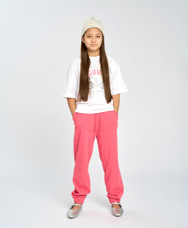 1470 р. 2100 р. Джоггеры для девочки коралловые с имитацией многослойности Button Blue