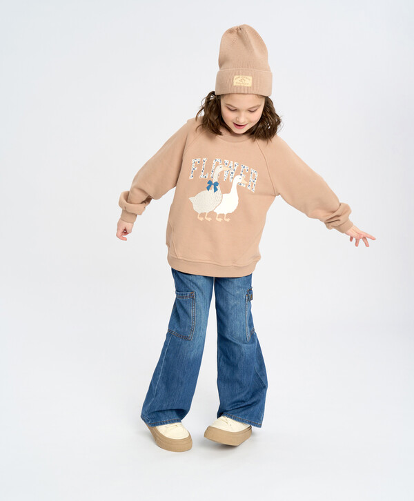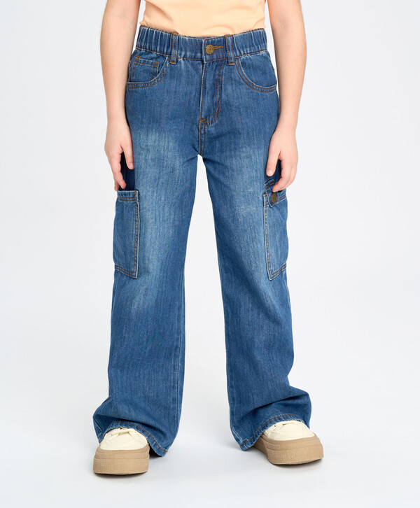 Широкие джинсы для девочки универсальные и комфортные – подойдут для любой фигуры. Джинсовые брюки выполнены из хлопка, поэтому дышащие, но прочные. Модель застегивается на пуговицу и молнию, есть тесьма на пуговке для утяжки с изнанки и шлевки для ремня. Джинсы палаццо для девочки широкие, комфортно сидят и не сковывают. Выполнены в насыщенном синем цвете с контрастной коричневой строчкой. Благодаря этому детские джинсы отлично впишутся в любой гардероб и подойдут на каждый день, на занятия, праздник и прогулку. Удобства и трендовости добавляет наличие шести карманов, как у карго. Два из них – большие накладные без клапанов, но на кнопке с одной стороны.