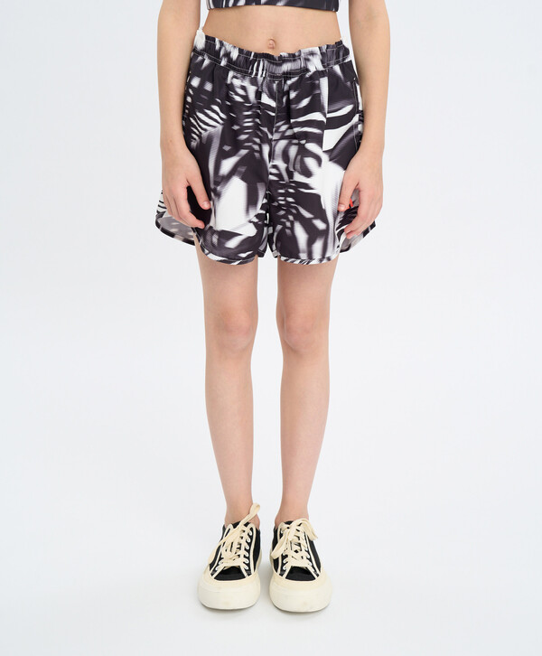 Шорты для купания для девочки выполнены из материала, который быстро сохнет и сохраняет цвет даже после контакта с агрессивной соленой водой. Гидрошорты сделаны со вшитыми сетчатыми трусиками и карманами для максимального комфорта. Свободный крой без прилегания будто создан для активных девчонок. Идеальную посадку обеспечивает пояс на резинке и завязки с изнанки. Модель подойдет для бассейна и пляжа. Детские шорты для плавания с черно-белым олловер принтом в виде листов монстеры и небольшим ярким элементом легко сочетать с разными верхами. Такой дизайн точно понравится девочке.