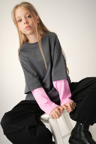 Трендовый подростковый лонгслив с двойными рукавами с сеткой — идеальный выбор для тех, кто любит стиль с характером! Полупрозрачные рукава создают дерзкое настроение и добавляют образу лёгкости.