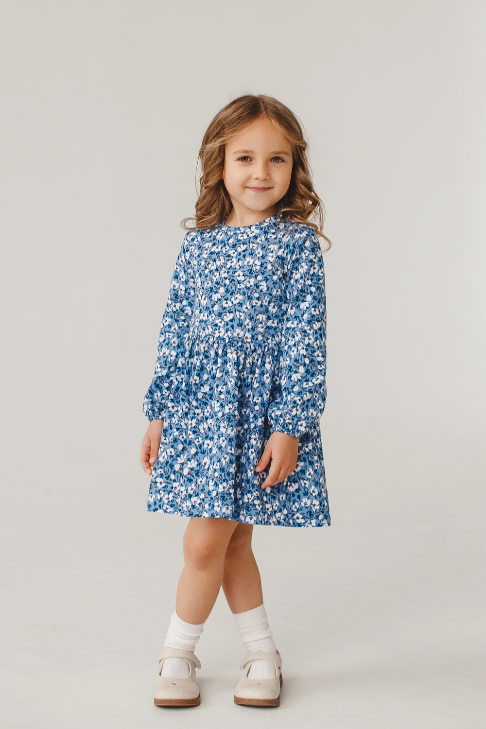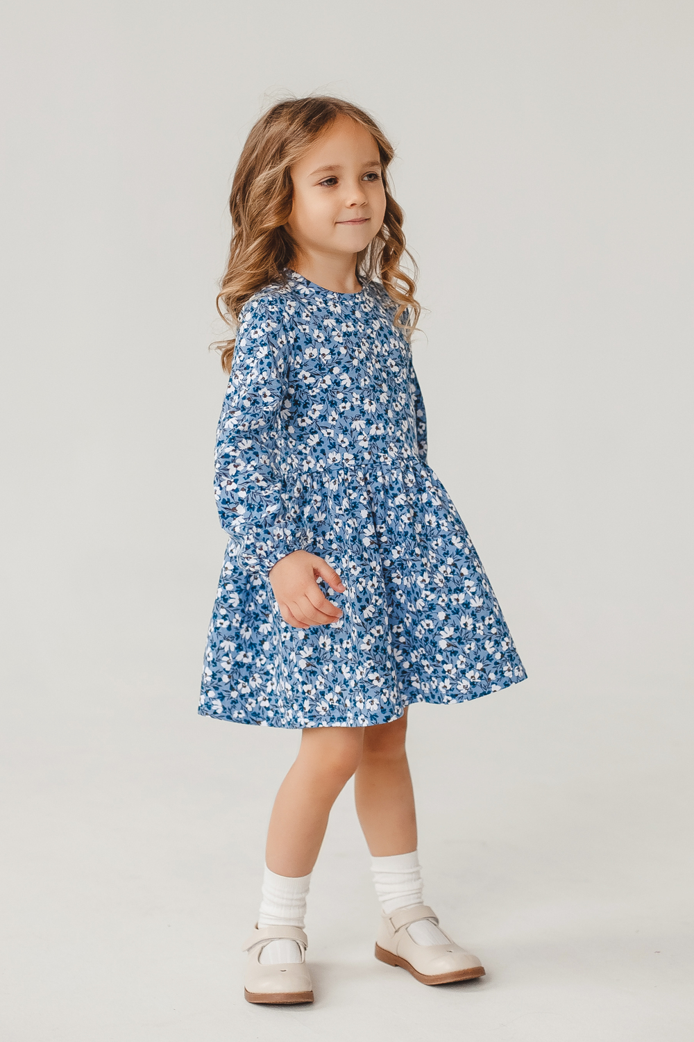 Приталенное платье для девочки из 100% хлопка нежное и комфортное решение для повседневных прогулок и торжеств. Мягкая, дышащая ткань не раздражает кожу, хорошо держит форму и легко стирается. Длинные рукава с аккуратной резинкой на манжетах надежно фиксируются, не сковывают движений и позволяют при желании заправлять рукав. Платье приталенного кроя красиво подчеркивает талию, при этом достаточно свободно по линии груди и плеч, обеспечивая комфорт при активных играх. Доступно в размерах от 86 до 122 см. Рекомендации по уходу: стирка в деликатном режиме при 40C, не отбеливать, гладить с изнанки при средней температуре, сушить в расправленном виде вдали от прямых солнечных лучей. Цвет: голубой; Материал: кулирка;кулирка; Состав: 100% хлопок.