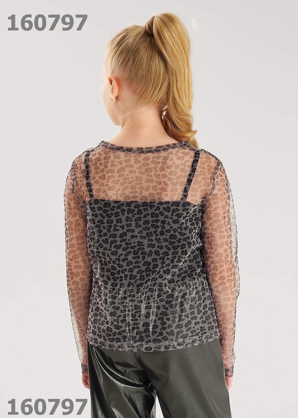 "Описание: Двухслойный трендовый укороченный лонгслив из сетки. Круглая эластичная горловина. Внутренний слой -майка выполнена из хлопка с эластаном. Прекрасно подойдет как для праздника так и для повседневной носки.