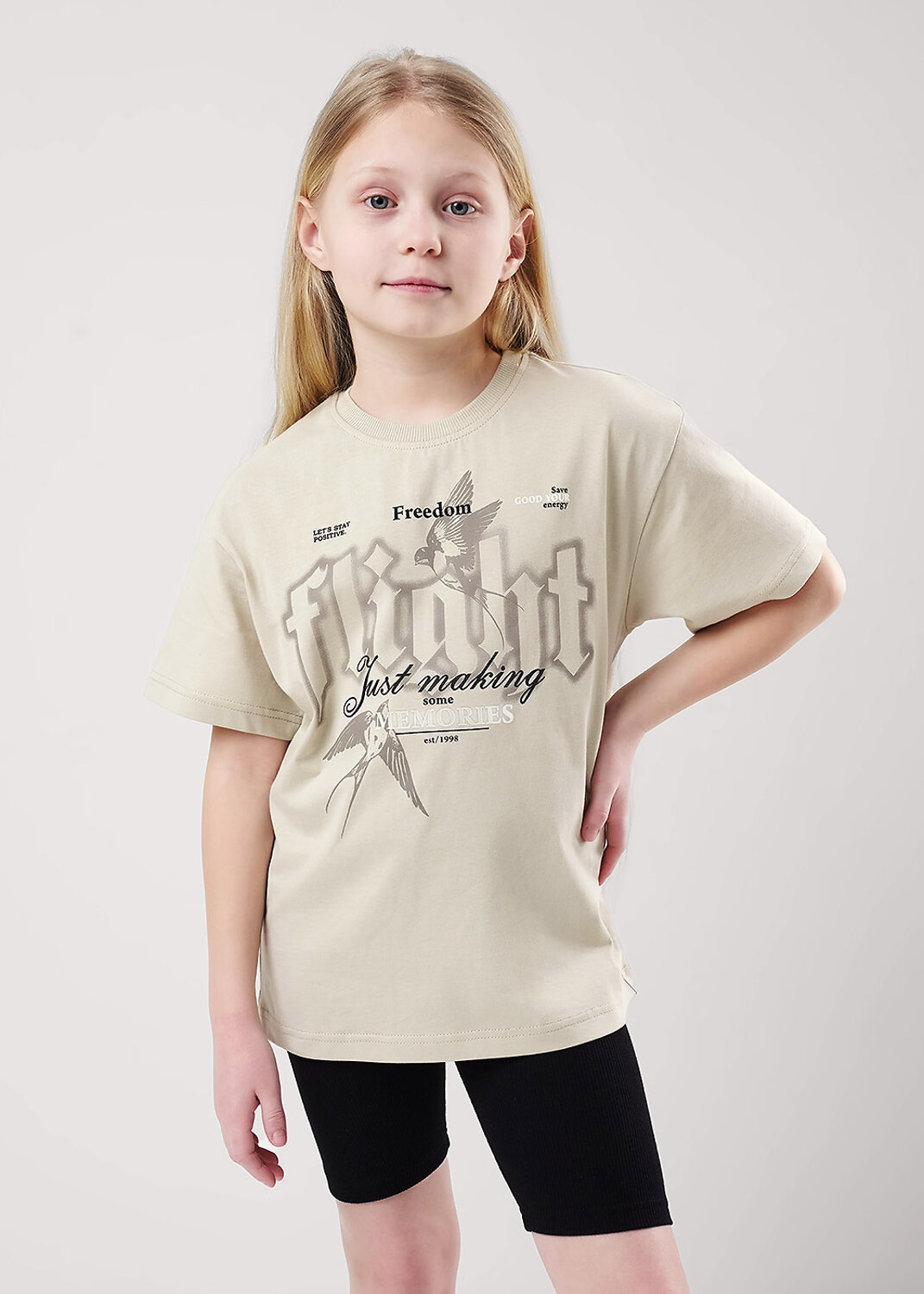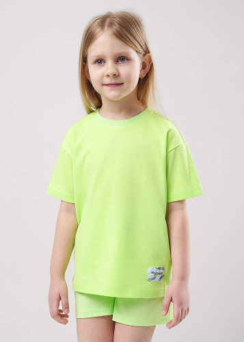 Актуальная футболка умеренного обьема из 100% хлопка отлично впишется в твой летний гардероб. Горловина оформлена кашкорсе. По центру переда трендовый принт.