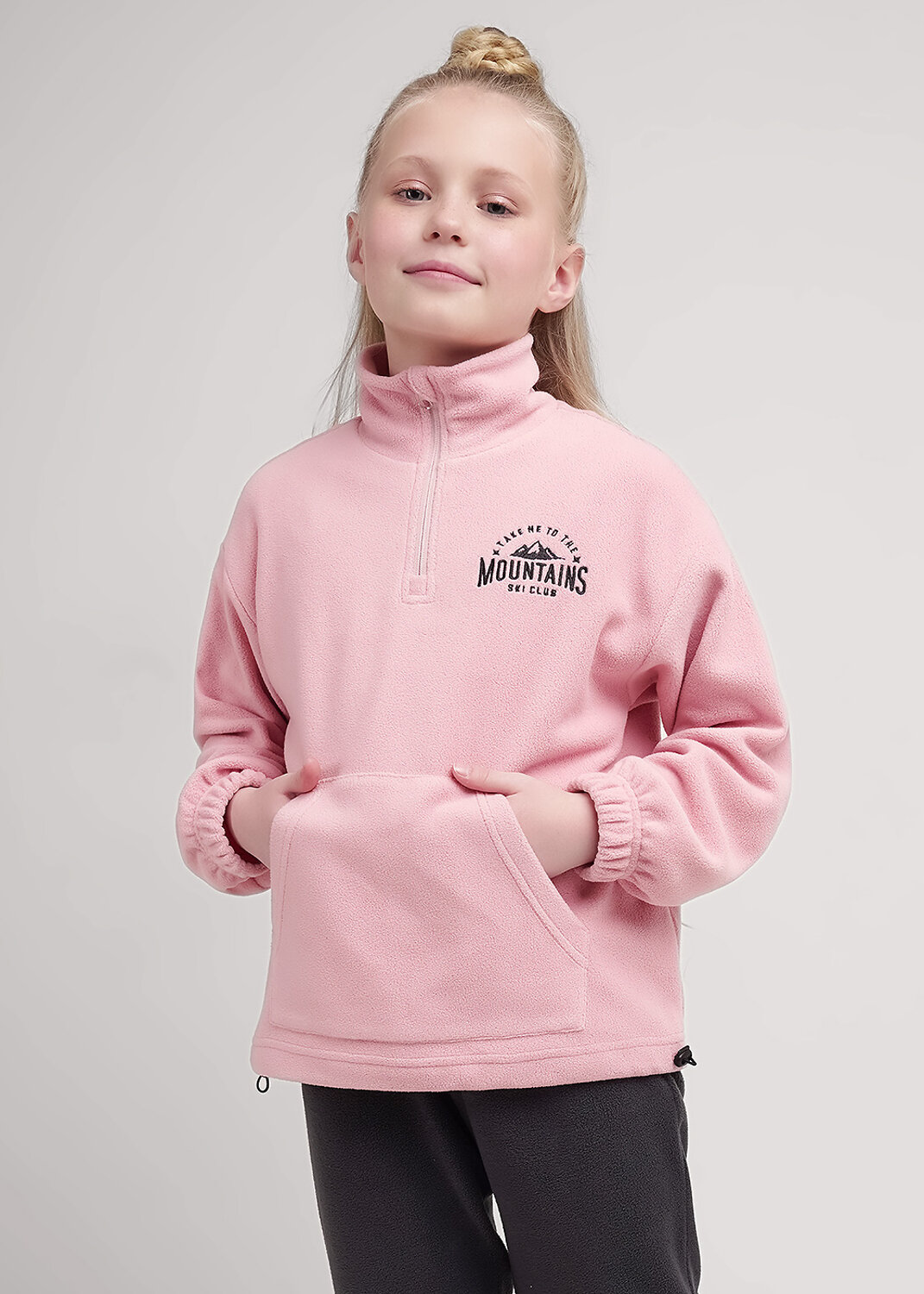 Создавай стильные луки и оставайся в тепле! Топовая модель толстовки из флиса с короткой молнией. Оверсайз силуэт, который регулируется по низу с помощью шляпного шнура и фиксаторов. Акцентная вышивка и мягкий воротник стойка.