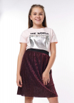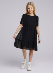 Нарядное двухслойное платье для девочки - отличный вариант для любого мероприятия или фотосессии. Рукава со сборкой по низу выполнены из мягкой блестящей сетки. Нижний слой платья - из кулирки 100% хлопок, верхний слой - из сетки, как на рукавах.