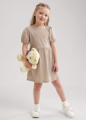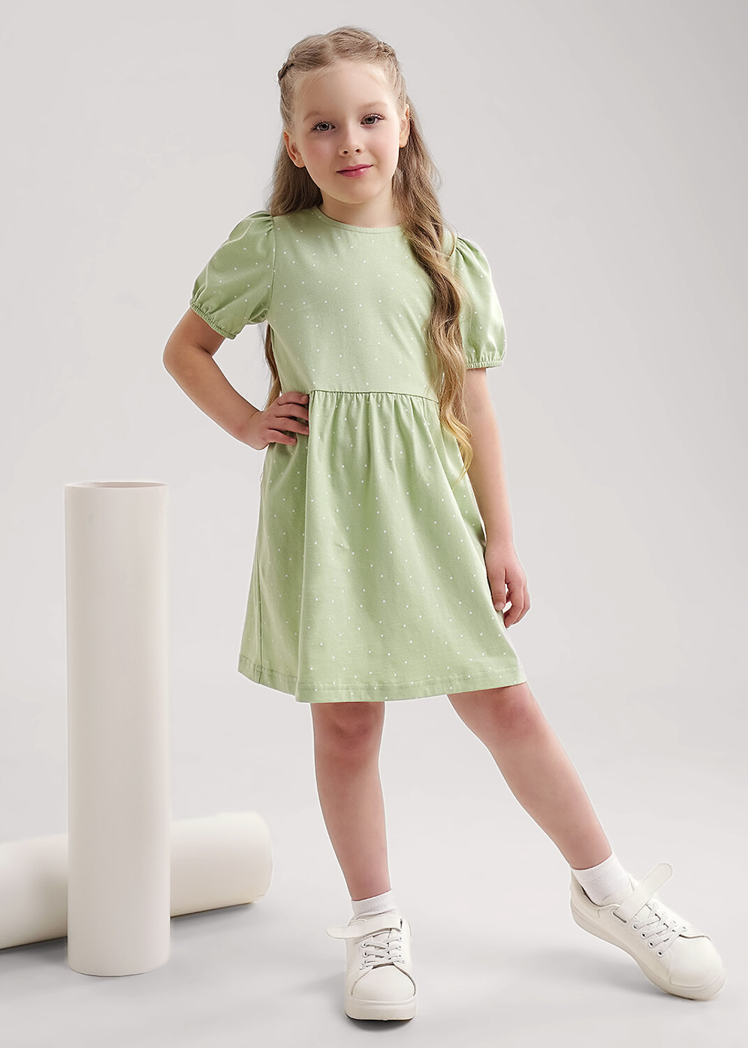 Милое романтичное платье из хлопкового трикотажа- то, что нужно для создания классного повседневного образа! Модель с пышной юбкой и объёмными рукавами- "фонариками" выполнена из полотна в набивку.