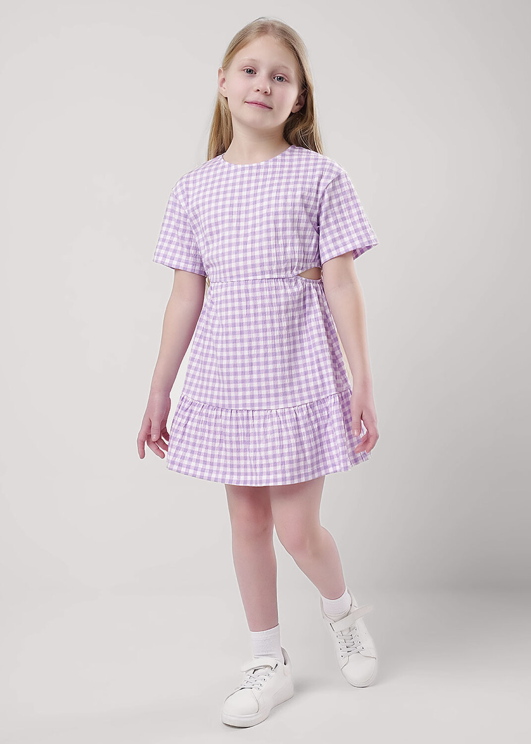 Стильное лёгкое платье- основа летнего гардероба! Модель выполнена из жатой кулирки в клеточку и дополнена декоративными разрезами по талии. Создавай яркие стильные образы на каждый день с новой коллекцией Clever!